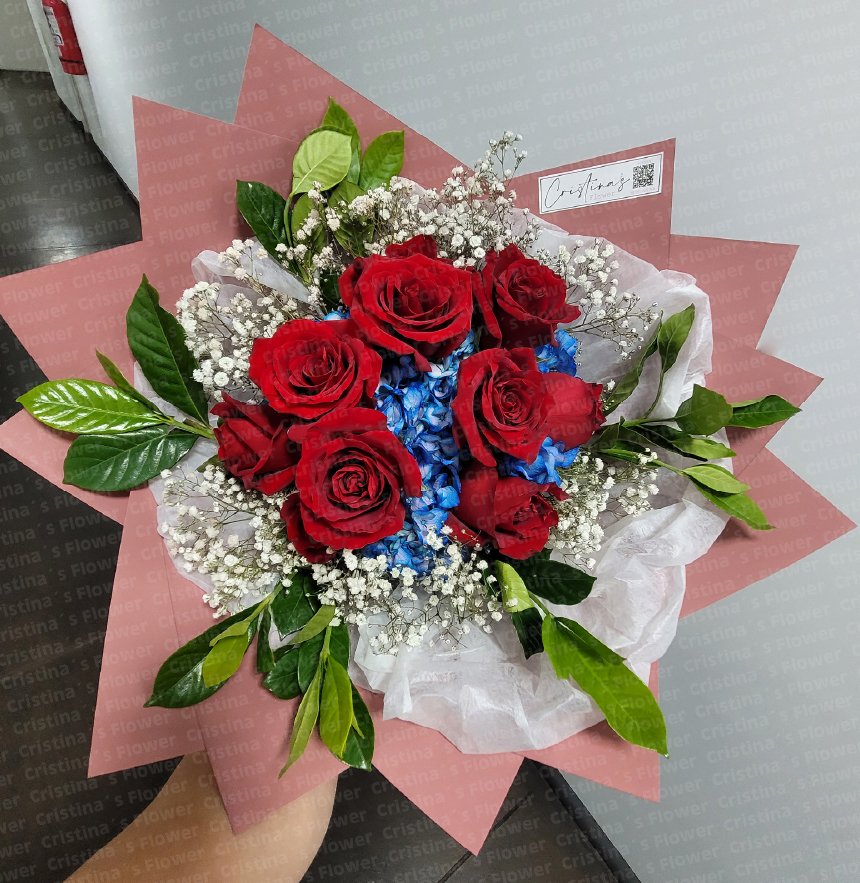 Ramo de 10 rosas y hortensia