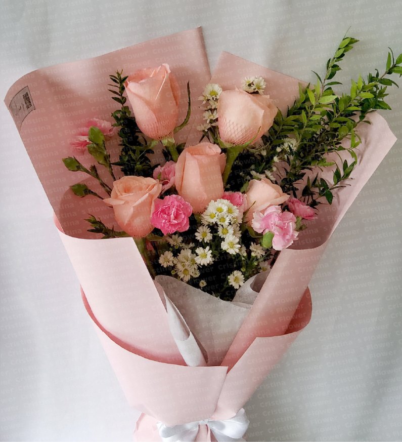 Ramo de 5 rosas con flores pequeñas mixtas